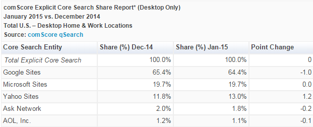 At the starting month of the year 2015 Yahoo has experienced an appreciable share growth and query volume. ComScore search report for January has constituted the fact.