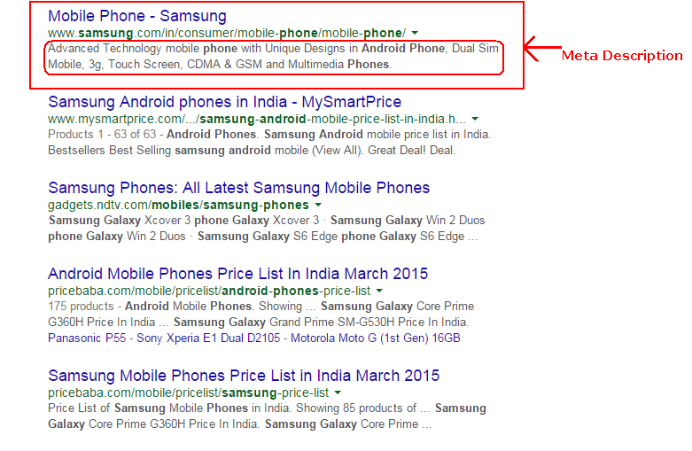 A Meta description is the snippet of information to forecast the detail of the link or content provided in search results. It is the basic attempt to attract the user for clicking through your site. The Meta descriptions are used to convince a user about the site.