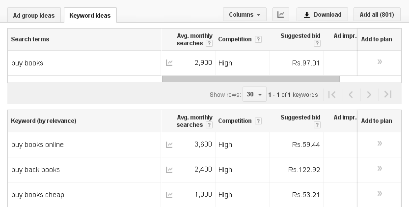 In the above snap you can check that the keywords like “buy books online”, “buy back books” or “buy cheap books” are the most searched keywords. So, if you are operating a book shopping site, you have to omit these common anchor texts. You can use the same like “I have brought cheaper books”. It also means about the source of cheap books.